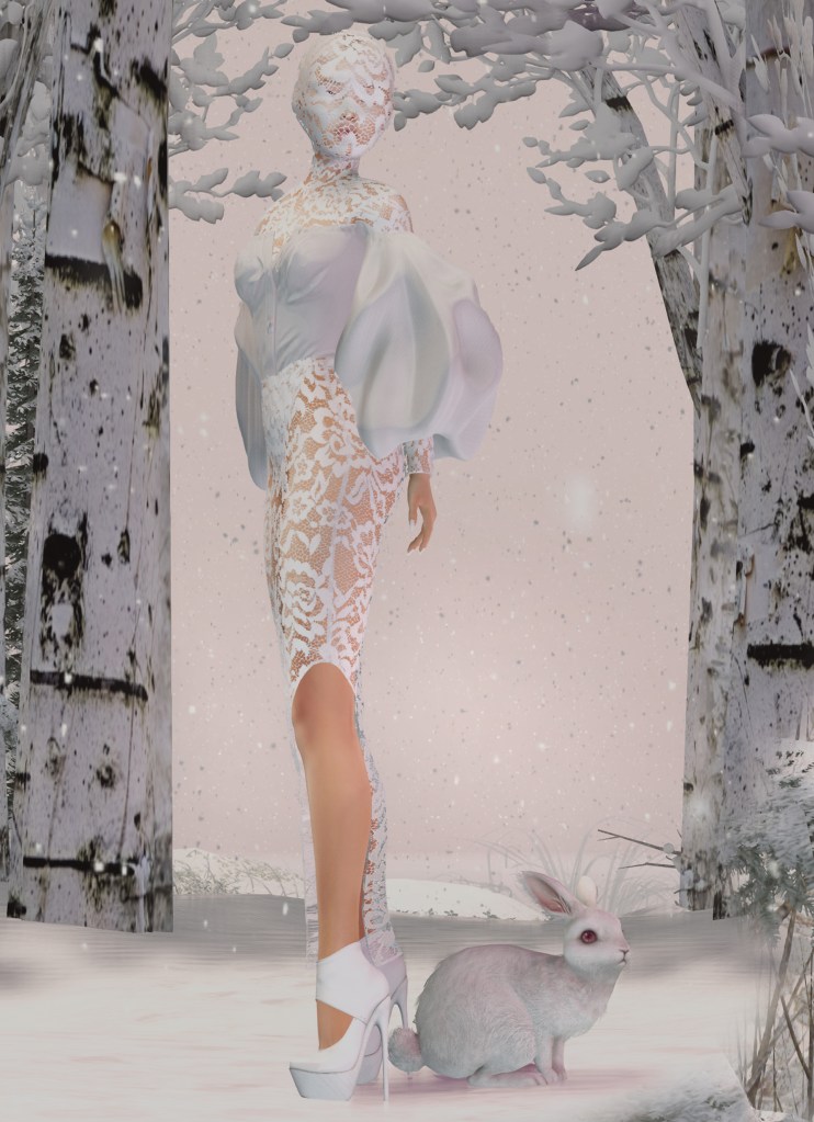 Rowne. – Baguci Mask, Bodysuit & Raut Lace Skirt in White